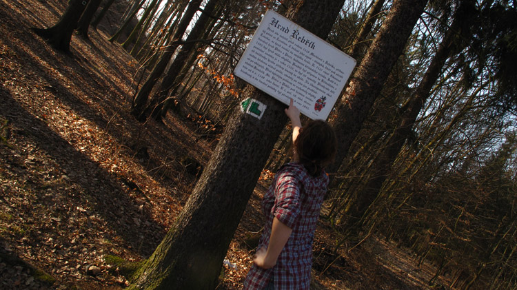 Od rozcestníku turistického značení na návsi pokračujte po červené turistické značce ve směru Skryje, zhruba po kilometrovém sestupu dojdete na rozcestí, kde se se cesta stáčí ostrou zatáčkou vlevo k brodu na Slapnici, zde opusťte turistické značení a pokračujte vpravo dále proti proudu Zbirožského potoka, kterého se již budete držet téměř celou trasu až do Zbiroha. Pokračujete dále až do Skryjských jezírek, v tomto úseku přejdete potok (lávka) a projdete bývalým chatovým táborem - dnes "rekreačním" táborem. Nazalekněte se soukromých pozemků, průchod pro turisty je zde povolen. Po průchodu touto osadou vstoupíte do lesa, kde se záhy napojíte na modrou turistickou trasu (Cesta protifašistických bojovníků) vedoucí ze Skryjí. Po zhruba za 10 min dojdete do samého "centra" Skryjských jezírek. Poučte se z naučných tabulí a pokračujte dále po modré směr Podmokelský mlýn. Těsně před výstupem z lesa uvidíte stále zvětšující se prostor osídlený kamennými mužíky, můžete přidat i nějakého svého... Dalším cílem je Podmokelský mlýn, zde najdete turistické odpočívadlo, informační turistickou mapu. Toto místo je rovněž začátkem Ptačí rezervace. Cesta v těchto místech znovu prochází lesem (dva přechody potoka, lávky z kmenů), rychle z něj ale vyjdete do otevřeného údolí s loukami, cesta se v těchto místech napojuje na zpevněnou silničku, minete Jankovský mlýn. Nyní máte dvě možnosti, dále pokračovat po modré, údolím s loukami k Ostroveckému mlýnu, Kozovu mlýnu, kolem Němcova rybníka.... Nebo pokračovat po zpevněné silničce do Ostrovce, malé vesničky s původní roubenou architekturou a zvoničkou a odtud dále do Lhotky (2 km). Obcí projdete a po klesání sejdete znovu ke Zbirožskému potoku, kde se u Sýkorova mlýnu znovu napojíte na modré turistické značení. V případě, že tuto variantu nezvolíte pokračujete údolím s loukami, obejdete další - tentokrát stále fungující tábor a dojdete pod Lhotku, kde přímo na trase narazíte na občerstvení u Starého Kozla (pouze v letní sezóně). Pokud chcete vidět Ostrovec i se občerstvit, stačí sem sejít pár desítek metrů ze Lhotky. Po modré pak pokračujete stoupáním na Matčinu Horu, z ní následuje sestup do Přísednice. Pokračujte dále do Jablečna, na Františkov. Odtud vede trasa kolem rybníků až na náměstí ve Zbiroze (v místě Turistické infocentrum, Zámek).